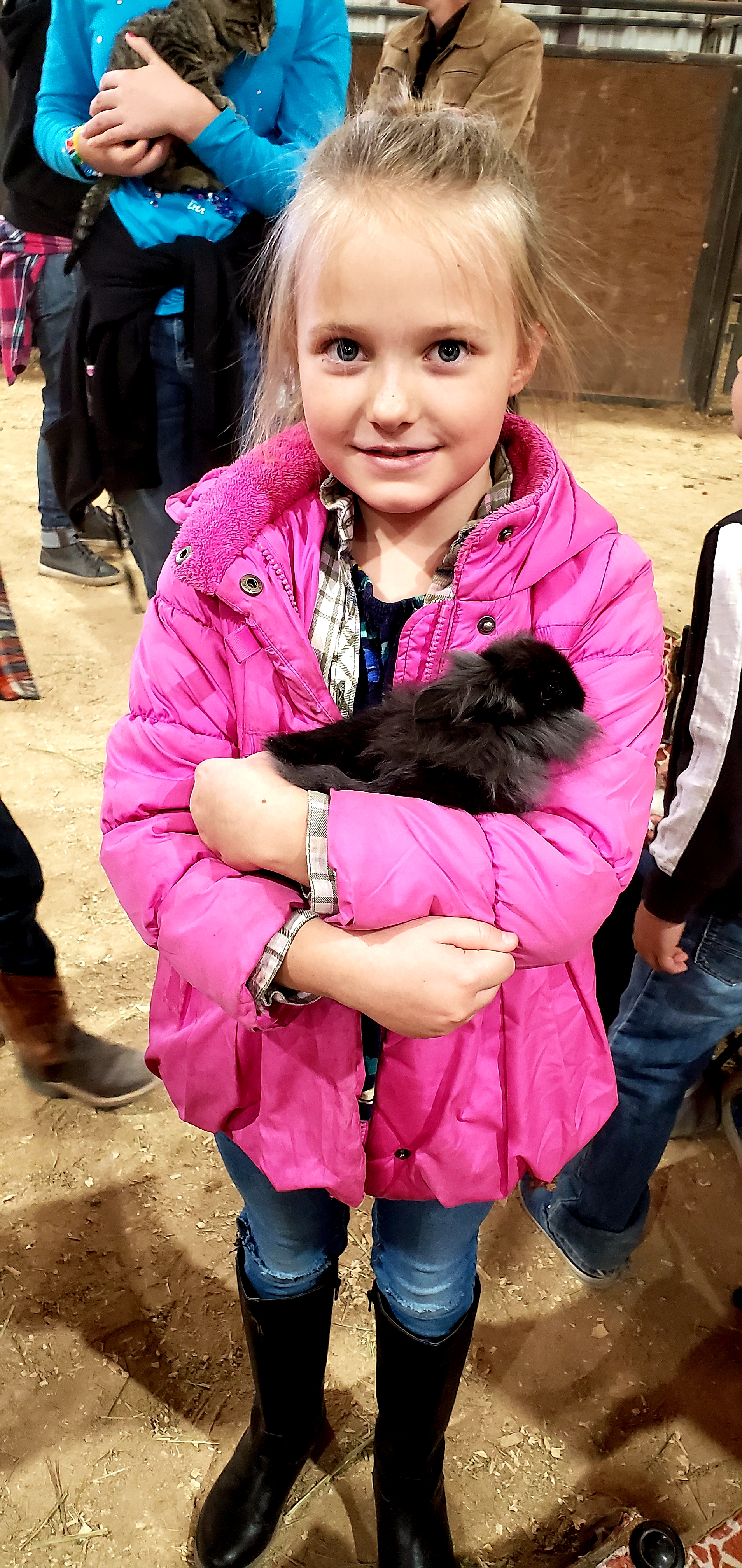 A petting zoo features rabbits, goats, sheep, kittens, ponies, draft horses and more.
